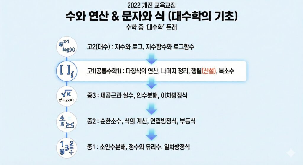- 특징: 복잡한 식을 깔끔하게 정리하거나 논리적인 규칙을 찾는 것을 즐기는 학생에게 적합합니다. 2022 개정 교육과정에서 부활한 **’행렬’**이 이 파트의 핵심입니다.